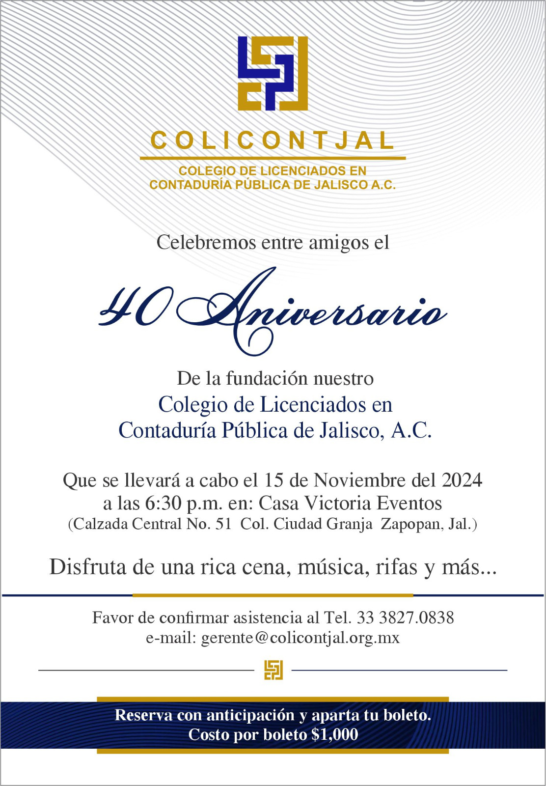 Reserva con anticipación tus lugares; los pagos serán a la cuenta general de Banorte a nombre del colegio.
